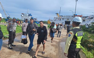Ketapang, Polda Kalbar – Kapolsek Kawasan Pelabuhan Sukabangun Iptu Tedy Alfian bersama anggota melaksanakan kegiatan pengamanan kedatangan Kapal Dharma Ferry II, pada Kamis, 08 Januari 2026, di Pelabuhan Pelindo Sukabangun, Kabupaten Ketapang. Kapal Dharma Ferry II yang datang dari pelabuhan Tanjung emas Semarang dinakhodai oleh Capt. Bambang Tri W (ANT-II) tersebut membawa 30 …